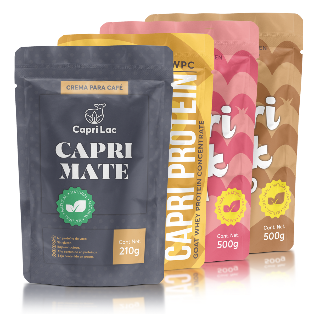 Descubre nuestra gama de productos naturales de leche de cabra: Leche saborizada para niños, crema gourmet para café y proteína para deportistas.